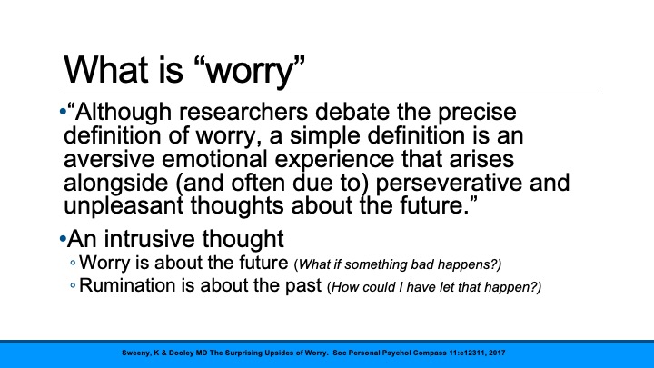 Another important point here – worrying is always about something in the future (as opposed to rumination, which is always about the past)